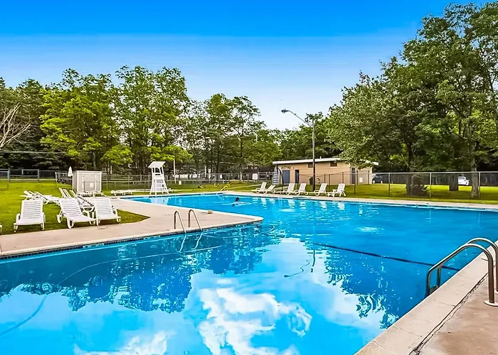 La villa de 167 m^2 Villa House In The Woods est située à 4 km du centre d'Albrightsville, à environ 15 minutes en voiture du Pocono Raceway. La villa dispose d'à la cafetière/théière, une TV multi-canal et une climatisation.